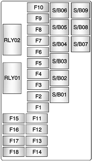 No. Description RLY01 Accessory/Retained accessory power RLY02 Liftgate RLY03 Spare RLY04 Spare RLY05 Logistic mode
