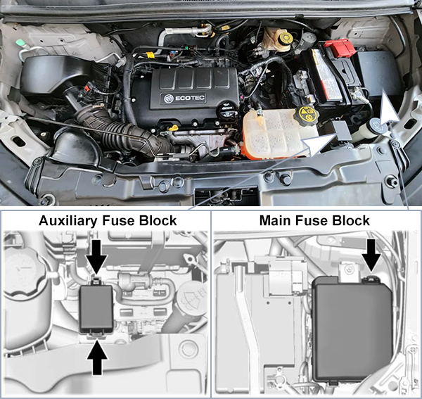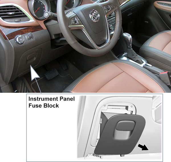 Looking for Buick Encore fuse box diagrams ? This article covers the first-generation Buick Encore before the facelift , produced from 2013 to 2016 , and includes fuse box diagrams for Buick Encore 2013, 2014, 2015 and 2016 , along with details about the location of the fuse panels inside the vehicle and a clear explanation of the assignment of each fuse and relay (fuse layout).