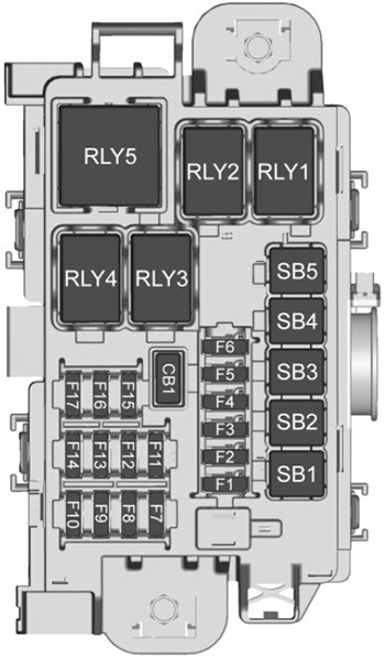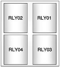 No. Type Description RLY1 Relay 2017-2021: Electric vacuum pump2022: N/ARLY2 Relay Cooling fan control 1 RLY3 Relay Cooling fan control 2 RLY4 Relay N/A
