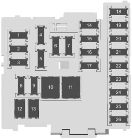 Passenger compartment fuse box: Fuse №7 – Console power outlet Fuse №26 – Trunk power outlet (2011–2012)