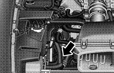 A mini-power distribution center is located in the engine compartment on the passenger’s side of the vehicle. This center contains radiator fan control relays and has two externally-mounted 40 Amp fuses for the radiator fans.