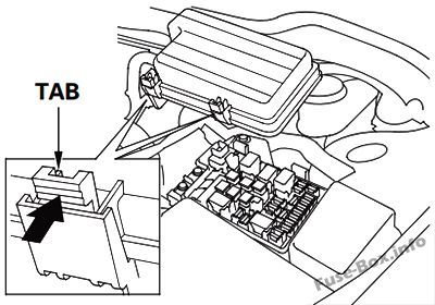 The under-hood fuse box is located near the back of the engine compartment on the driver’s side.