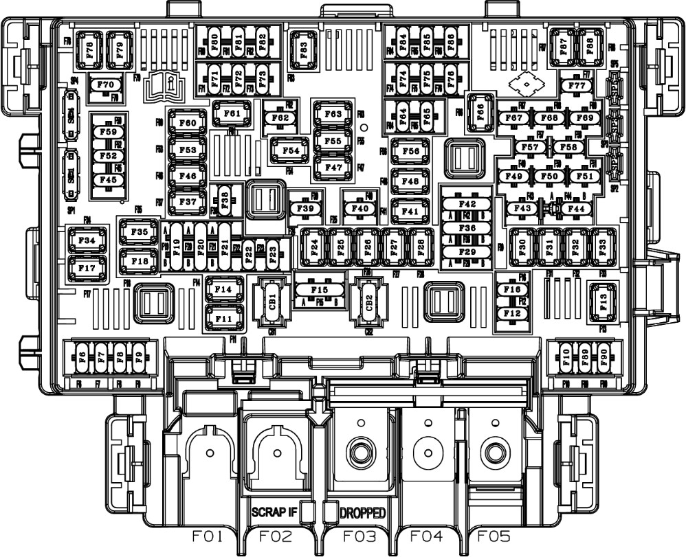 | F59 | – | 15 Amp Blue | TELEMATICS BOX MODULE (TBM) / VEHICLE THEFT MODULE (VTM) / GATEWAY SECURITY MOD / ALARM SIREN UNIT (ASU) / ULTRA-SONIC ALARM MODULE (UAM, AKA INTRUSION MODULE) / CLIMATE CONTROL DISPLAY MODULE FRONT (CCDMF) |