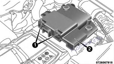 The fuses may be contained in two units. Fuse holder version 1 is located closest to the rear of the vehicle and fuse holder version 2 (if equipped with trailer towing) is located closest to the front of the vehicle.
