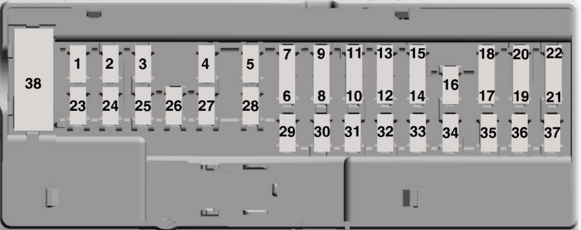 No. Type Amps Description 1 Micro 2 10 A2017-2018: Lighting (ambient, glove box, vanity, dome, trunk)2019-2020: N/A2 Micro 2 7.5 A Lumbar 3 Micro 2 20 A Driver door unlock 4 Micro 2 5 A Not used (spare) 5 Micro 2 20 A Subwoofer amplifier 6 Micro 3 10 A Not used (spare) 7 Micro 3 10 A Not used (spare) 8 Micro 3 10 A Not used (spare) 9 Micro 3 10 A2017: Rear seat entertainment module2018-2020: Not used (spare)10 Micro 3 5 A Power trunk logic. Keypad. Cellphone passport module. 11 Micro 3 5 A Not used (spare) 12 Micro 3 2017: 5 A2018-2020: 7.5 AClimate control. Gear shift. 13 Micro 3 7.5 A Steering wheel column. Instrument cluster. Datalink logic. 14 Micro 3 10 A Extended power module. 15 Micro 3 10 A Datalink/Gateway module. 16 Micro 2 15 A 2017: Decklid release. Child lock.2018-2020: Decklid release.17 Micro 3 5 A Not used (spare) 18 Micro 3 5 A Push button start/stop. 19 Micro 3 7.5 A Extended power module. 20 Micro 3 7.5 A Adaptive headlamps. 21 Micro 3 5 A Humidity and in-car temperature. 22 Micro 3 5 A 2017-2019: Pedestrian sounder (spare).2020: Not used (spare).23 Micro 2 10 A Delayed accessory (power inverter, moonroof, all smart window, driver window switch pack). Rear sunshade. Panoramic roof. 24 Micro 2 20 A Central lock/unlock. 25 Micro 2 30 A Driver door (window, mirror). 26 Micro 2 30 A Front passenger door (window, mirror). 27 Micro 2 30 A Moonroof. 28 Micro 2 20 A Amplifier. 29 Micro 2 30 A Rear driver side door (window). 30 Micro 2 30 A Rear passenger side door (window). 31 Micro 2 15 A Not used (spare) 32 Micro 2 10 A Voice control. Display. Radio frequency receiver. 33 Micro 2 20 A Radio. Active noise control. CD changer. 34 Micro 2 30 A Run/start (fuse #19, 20, 21, 22, 35, 36, 37, circuit breaker). 35 Micro 2 5 A Not used (spare) 36 Micro 2 15 A Auto-dimming rear view mirror. Heated rear seats. Continuous control damping suspension module. 37 Micro 2 20 A Heated steering wheel. 38 Circuit Breaker 30 A Not used (spare)