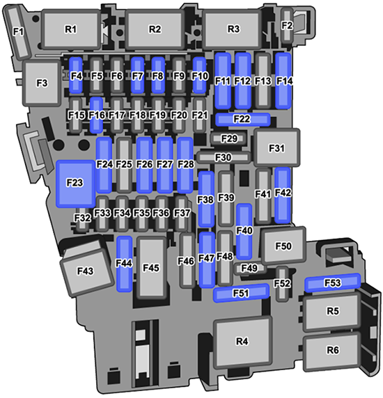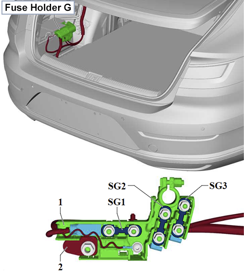 Assignment of the high voltage fuse in the luggage compartment fuse box F