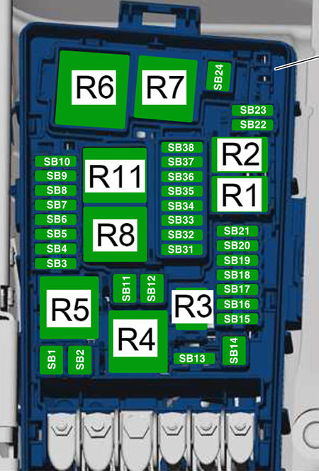 | SC23 | 40A – | up to Apr 2017: Vehicle electrical system control module – Right front headlamp from May 2017: Not Assigned |