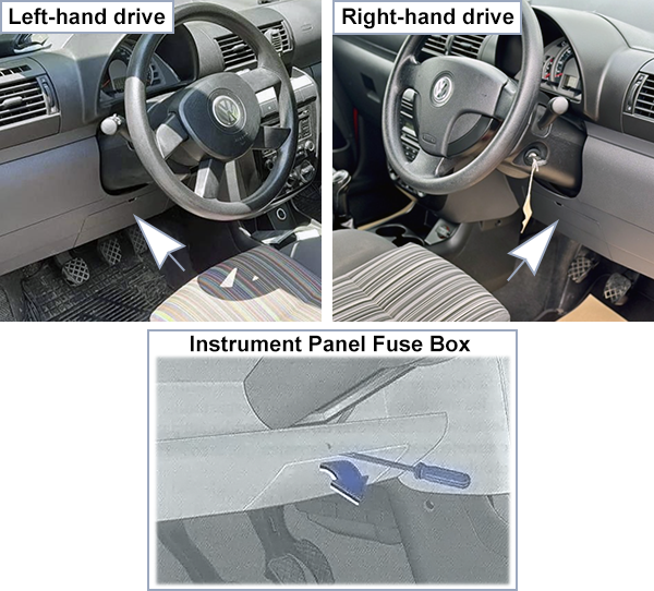 | SB35 | 10A | Front and rear fog light switch -E23- Front and rear fog light switch illumination bulb -L40- Left headlight twin filament bulb -L1- Dash panel insert -K- Left headlight main beam bulb -M30- (Until November, 2006) |