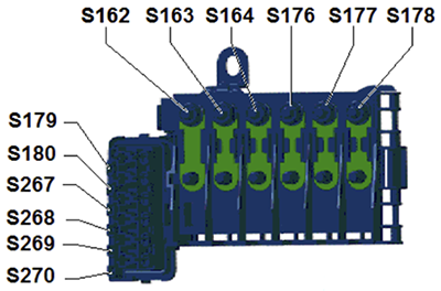 | 43 | 5A | Front left side lamp, Rear left lamp, Onboard network control unit (Left side lights) |