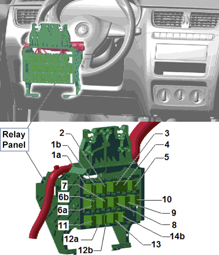 | 28 | 5A | External side mirror folding control unit, Engine control unit, Voltage input relay 1, Fuel pump relay |