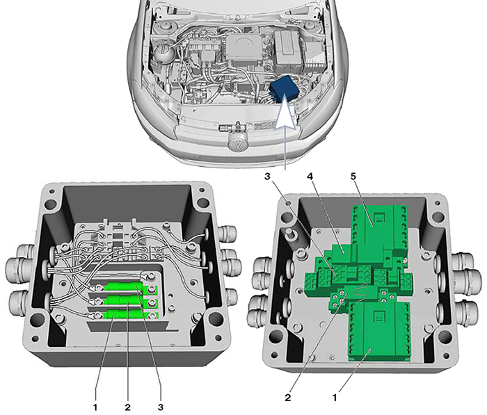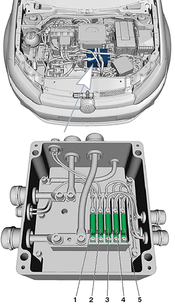 Assignment of the fuses in engine compartment (SD) Golf Blue-E-Motion