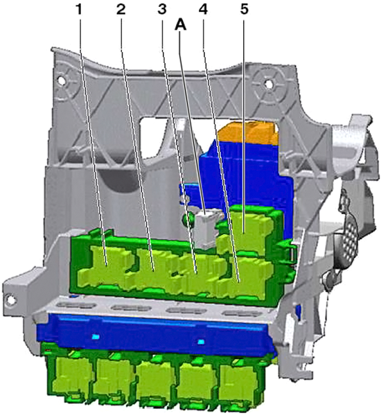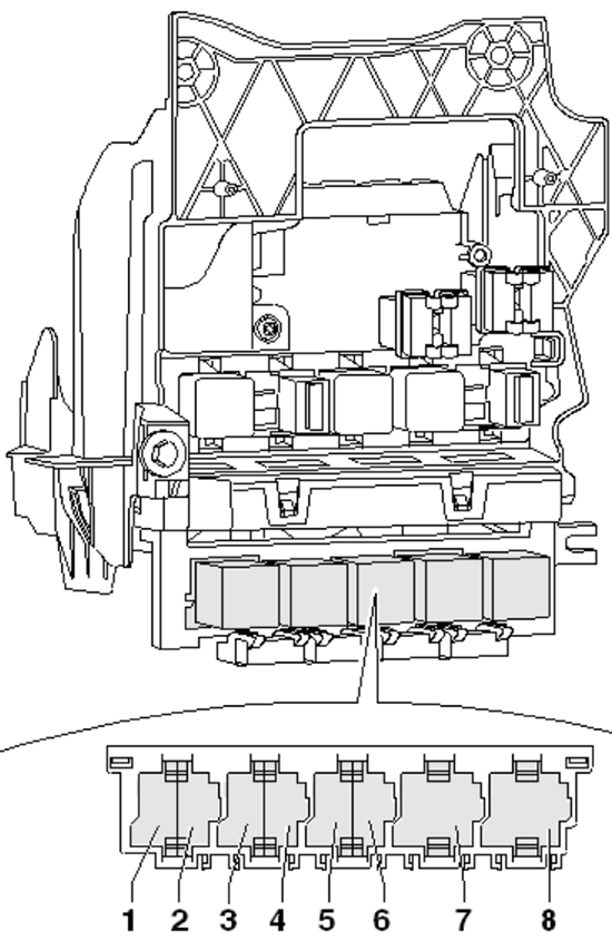 | 5 | up to Oct 2011: High heat output relay from Nov 2011: Fresh air blower relay (models with Climatic or heater) |