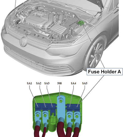 Assignment of the high voltage fuses in engine compartment (-SA-)