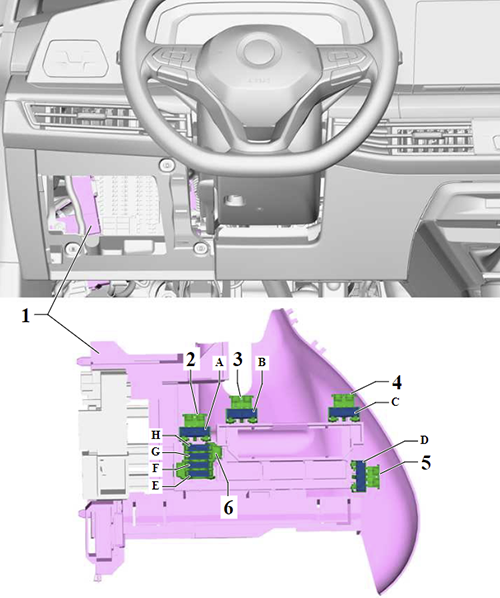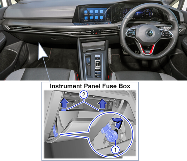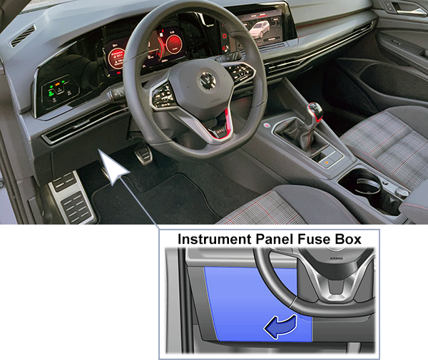 Looking for Volkswagen Golf fuse box diagrams? This article covers the eighth-generation Volkswagen Golf (Model Codes: CD1, CG5), produced from 2019, and includes fuse box diagrams for Volkswagen Golf (MK8) 2019, 2020, 2021, 2022, 2023, 2024, 2025 and 2026, along with details about the location of the fuse panels inside the vehicle and a clear explanation of the assignment of each fuse and relay (fuse layout).