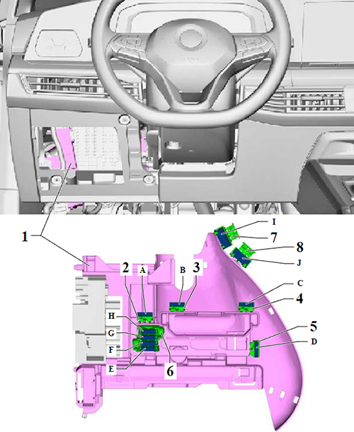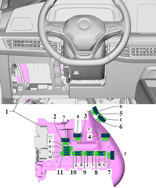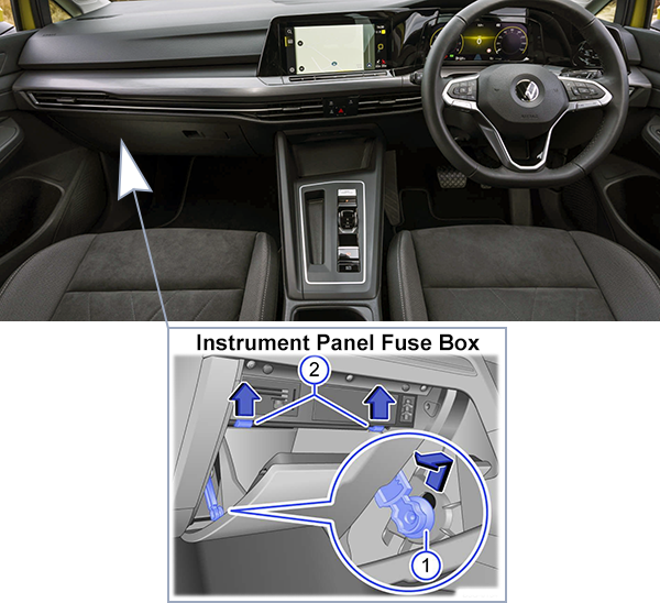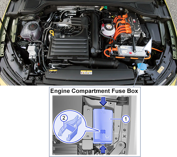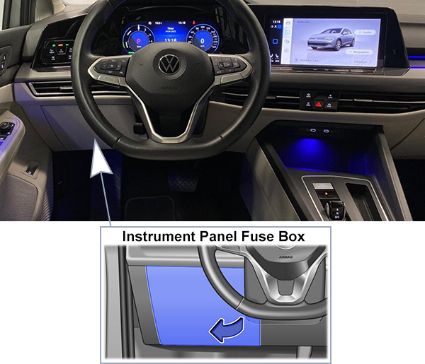 Looking for Volkswagen Golf eHybrid fuse box diagrams? This article covers the plug-in hybrid eighth-generation Volkswagen Golf eHybrid (Model Code: CD1), available from 2020, and includes fuse box diagrams for Volkswagen Golf eHybrid (MK8) 2020, 2021, 2022, 2023, 2024, 2025 and 2026, along with details about the location of the fuse panels inside the vehicle and a clear explanation of the assignment of each fuse and relay (fuse layout).