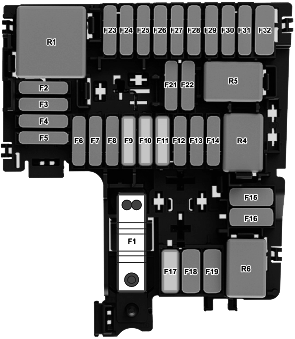 | SC32 | 25A (silver-plated contacts) | Onboard supply control unit – exterior lighting on the right side |