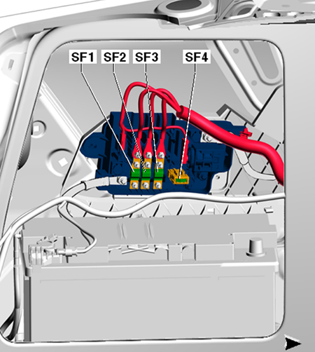 Assignment of the high voltage fuses in the engine compartment Version 2 fuse box (SA)