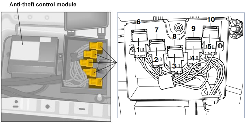 Assignment of the relays in the luggage compartment