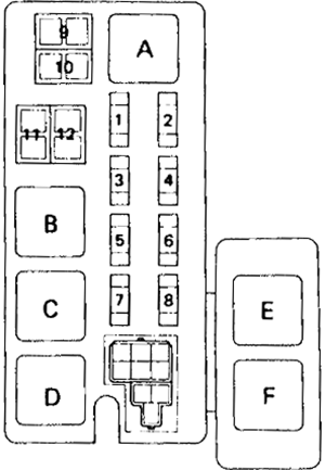 ID. Amps Description A 40A Heater fuse / Dimmer Relay B Headlight Control Relay C EFI Relay (22R-E Engine) Fuel Heater Relay (L Series Engine) D CMH Relay E Dim-Dip Relay №2 (U.K.) F Dim-Dip Relay №3 (U.K.)