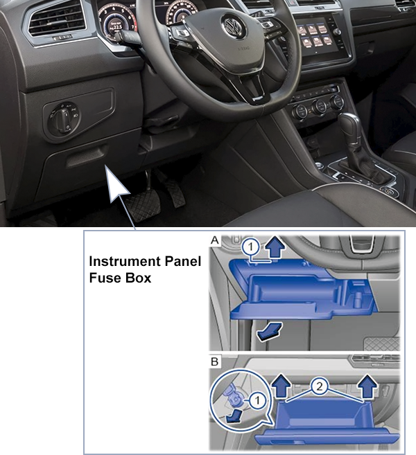 Looking for Volkswagen Tiguan fuse box diagrams? This article covers the pre-facelift second-generation Volkswagen Tiguan (Model Codes: AD, BW), produced from 2016 to 2020, and includes fuse box diagrams for Volkswagen Tiguan 2016, 2017, 2018, 2019 and 2020, along with information about the location of the fuse panels inside the vehicle and a detailed breakdown of the assignment of each fuse (fuse layout).