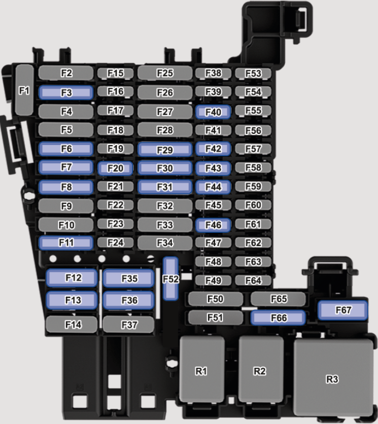 | 66 | 15A (ATO) | Rear window wiper motor |
